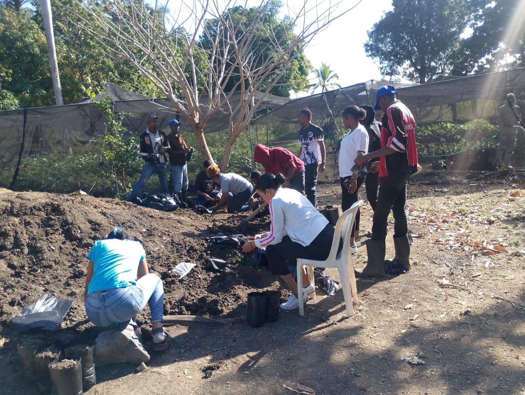El doctor Francisco De los Santos, director provincial para el Desarrollo Fronterizo, informo que los   estudiantes participan en llenado de fundas y otras labores de mantenimiento del vivero, ubicado en el Distrito Municipal Guanito.