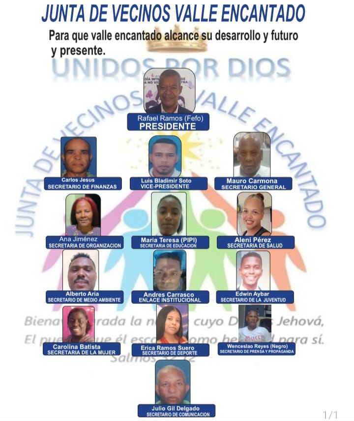 La Junta de Vecinos, Valle Encantado del Distrito Municipal de Quita Sueño, del Municipio de Haina, Provincia San Cristóbal, celebrará su asamblea general para escoger a su Presidente y demás miembros directivos, a celebrarse el día 10 de Agosto del año 2025.