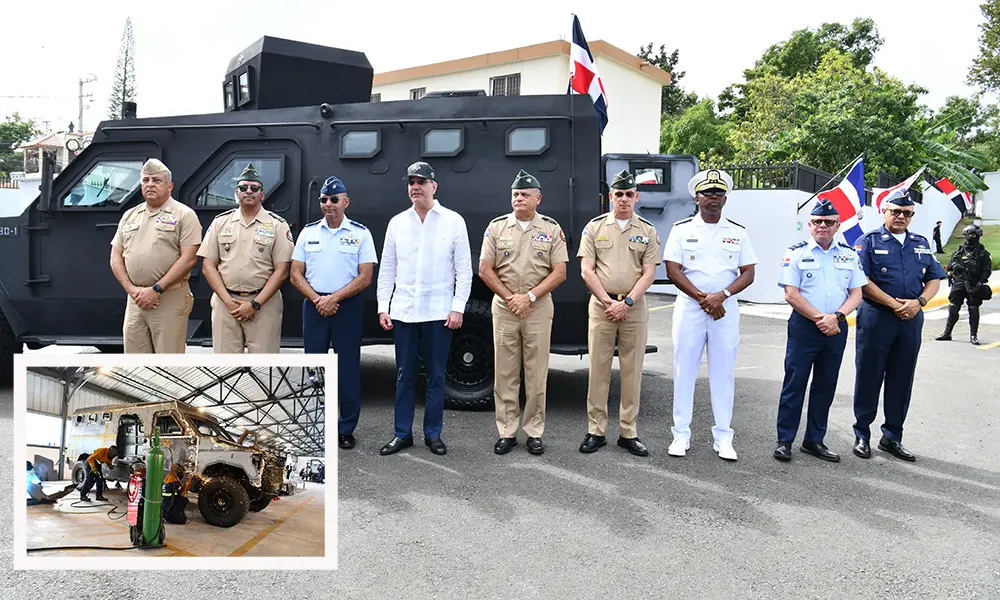 El presidente Luis Abinader y el ministro de Defensa, Carlos Antonio Fernández Onofre, presentaron ayer el primer vehículo militar blindado y ensamblado por la Industria Militar Dominicana, la cual fue convertida en empresa pública el año pasado y que con su trabajo de ensamble de vehículos y butacas, además de la confección de uniformes para las Fuerzas Armadas, logró en 2025 un ahorro al Gobierno en más de 300 millones de pesos.