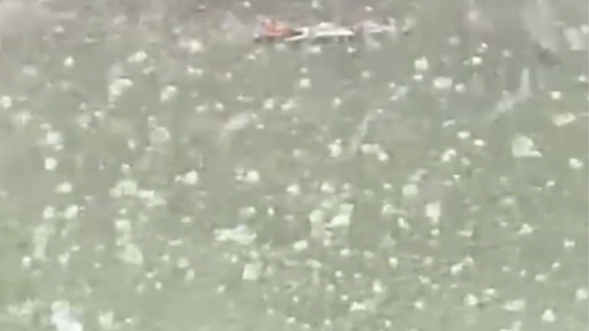 ​Desde Santo Domingo Este y el Distrito Nacional, personas han compartido videos de la granizada.